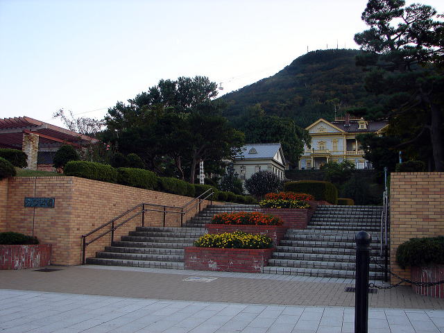 ![]() 基坂(もといさか) 元町公園から港方面へと下る基坂。この坂を少し下った右手が旧イギリス領事館。 |