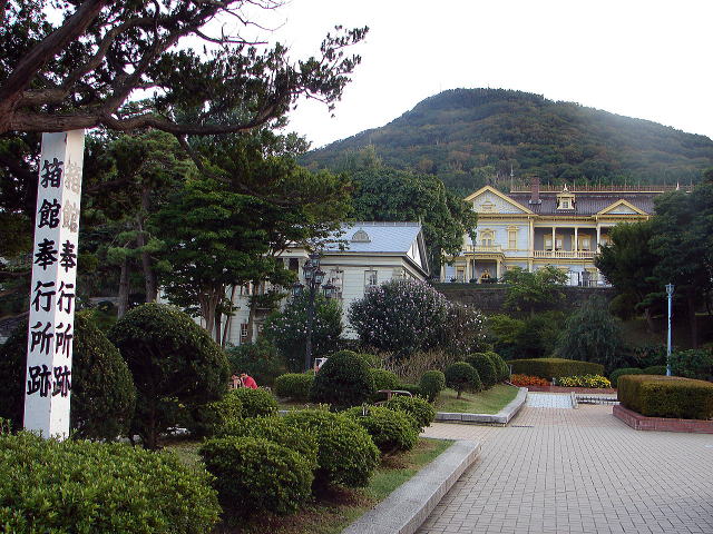 ![]() 旧イギリス領事館(開港記念館) 平成4年(1992年)8月からは、開港記念ホール、開港の歴史を伝える展示室、レストランなどを設け、一般公開をしている。 |