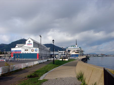 ![]() 青函連絡船記念館摩周丸 後方は函館山、右は函館港。 |