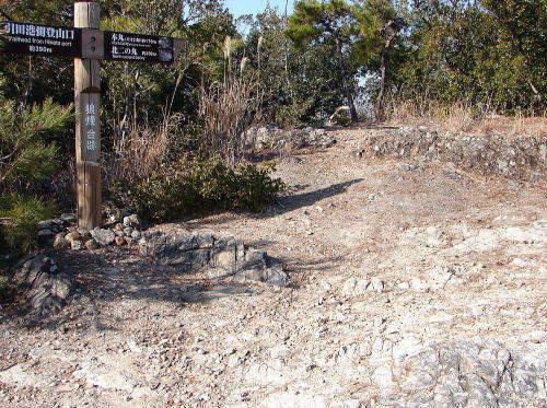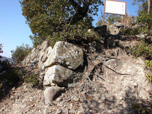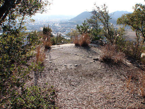 ![]() 狼煙台跡 登山口からここまで約15分。そして、本丸跡までは約3分でした。標高約82mなので城廻は楽勝かと思いきやとんでもない間違いでした。城域は広く上り下りの道もあり大変でした。10数人の訪問者と出会いましたが、1月にもかかわらず汗だくでフウフウ言いながら散策していました。 |