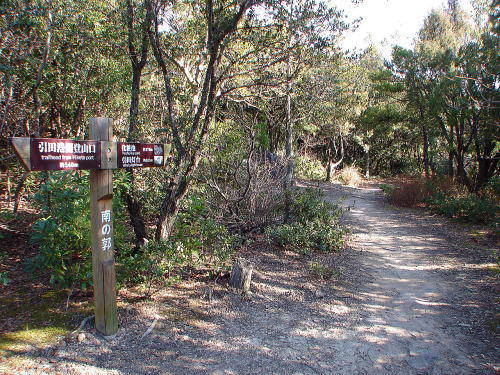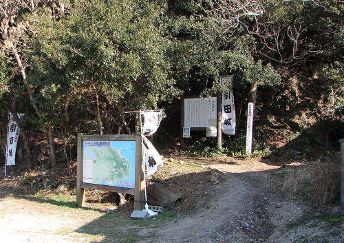 ![]() 引田港側登山口 城の歴史や城跡案内図などの説明板が設置。 |