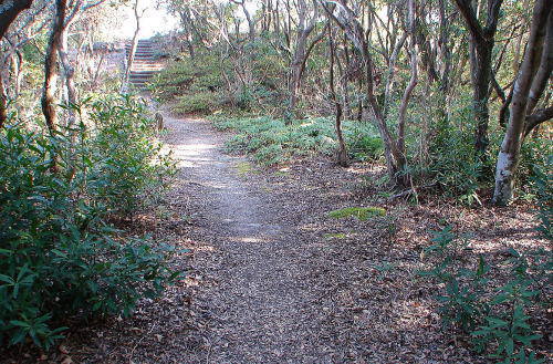 ![]() 南の郭 この奥に天守台跡が残る。 |