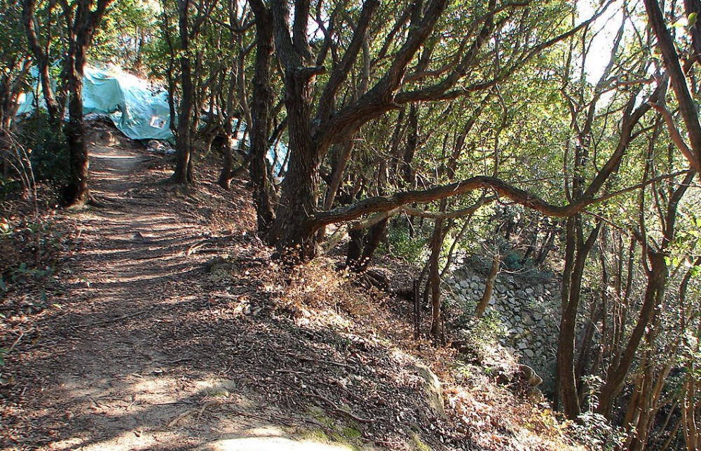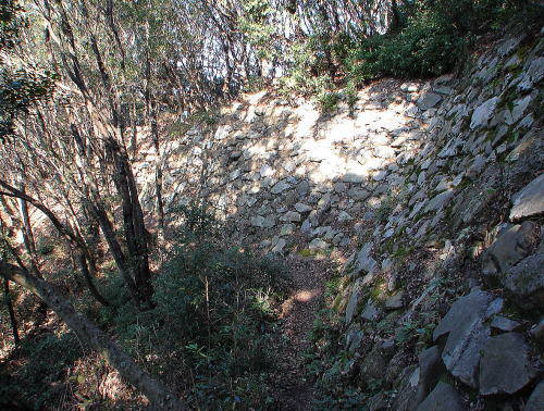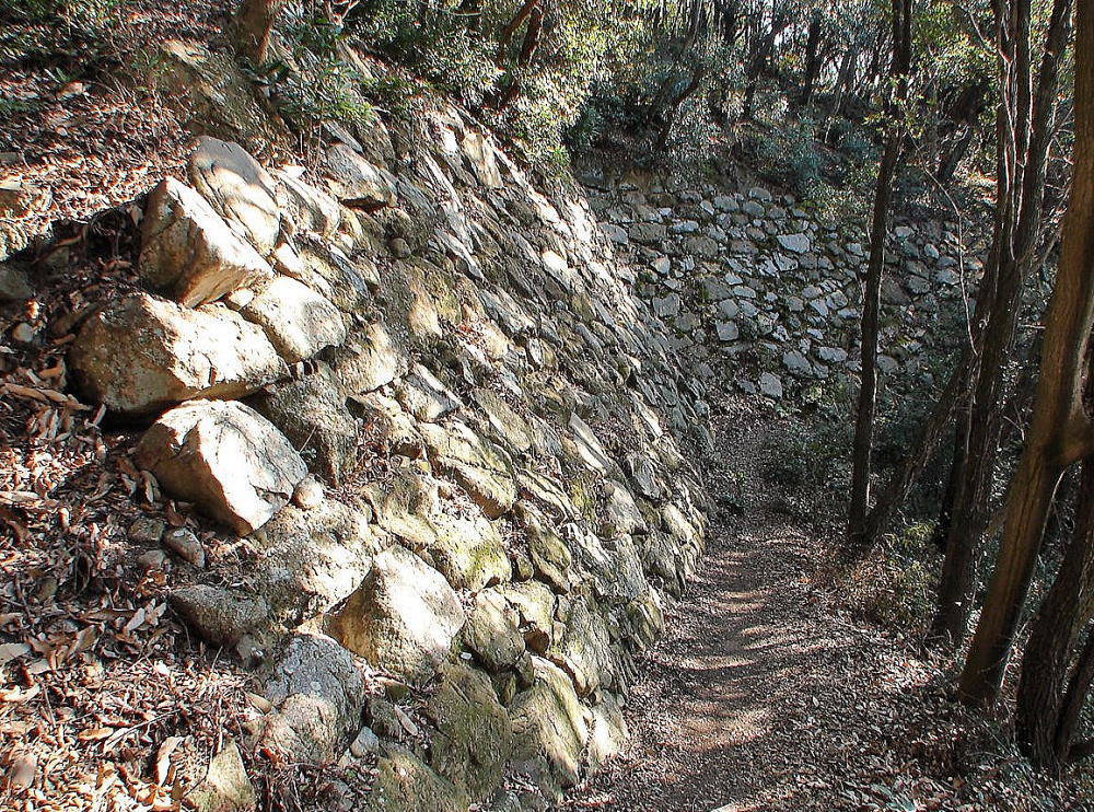 | (注)現在利用している遊歩道は大正時代末期に整備された遊歩道です。このため、築城当時と違う経路があります。崩落の可能性がある石垣をシートで覆い保護している場所や時期により下草などが茂っている場所があります。 |