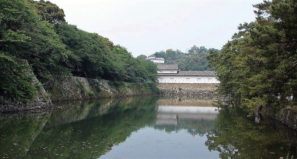 ![]() <彦根城のなかで美しい景観のひとつ> 中堀から、二の丸佐和口多聞櫓(重要文化財)と、多聞櫓上の天秤櫓(重要文化財)、さらにその右上の国宝天守を望む |
