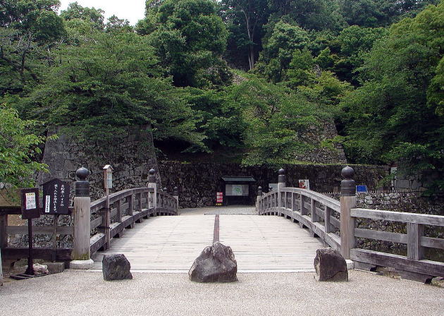 <表門>![]() 表門橋を渡った所に「登り石垣」が築かれている |
