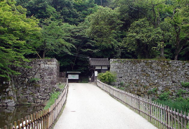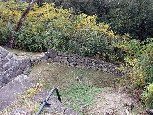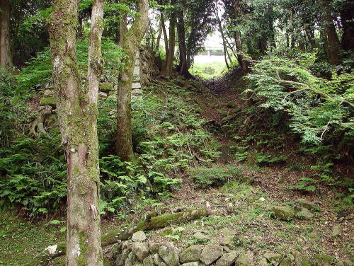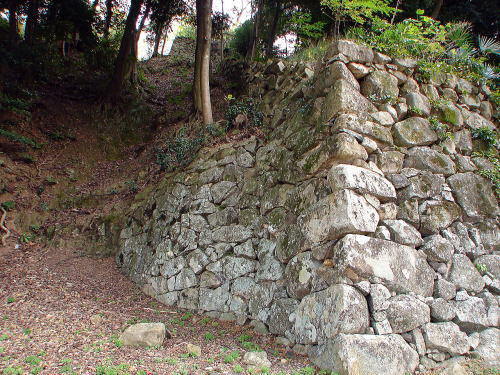 <黒門>![]() 黒門から右に進むとすぐ左手に「登り石垣」が築かれている |