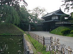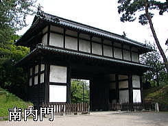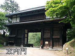 ▲追手門(おうてもん)、南内門(みなみうちもん)、東門(ひがしもん)、東内門(ひがしうちもん)、北門(きたもん・「または亀甲門(かめのこもん)」の五つの城門。