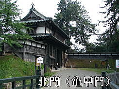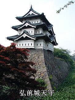 | 弘前藩(津軽藩)10万石の居城。西に岩木川、東に土淵川、西から南にかけて急崖がつくる細長い台地に築かれた平山城。 戦国時代、三戸南部氏との激しい抗争を経て、津軽統一を成し遂げた藩祖大浦(津軽)為信が高岡の地に築城を計画、その子2代藩主信枚(のぶひら)が慶長15年(1610)に着手し、翌慶長16年(1611)に、ほぼ完成した。以後弘前城は、津軽氏の居城として廃藩に至るまでの260年間、津軽藩政の中心地であった。 はじめ高(鷹)岡城とよばれたが、寛永4年(1627)の落雷によって5層天守が焼失、火災は屋敷御殿まで及び、その翌年弘前城と改称された。 3層の現天守は、9代寧親(やすちか)の文化8年(1811)に本丸の隅櫓を改造して構築。明治維新後、本丸御殿や武芸所などが破却されたが、3つの櫓、5つの門は保存され、天守とともに重要文化財に指定されている。城跡は、明治28年(1895)に、弘前公園として開放され、昭和27年(1952)には、国史跡に指定される。 |