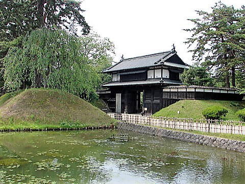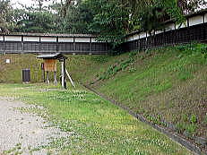 ▲中濠の土塁上に建つ未申櫓。右方向(東)に、「杉の大橋」が架かる。
