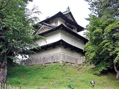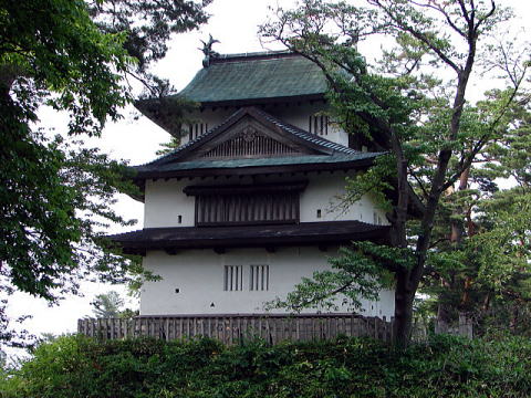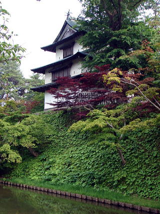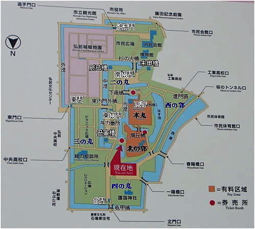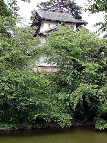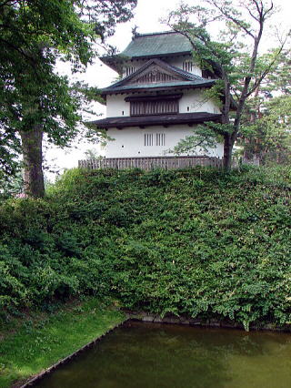 弘前城二の丸は、南・東・北三方から本丸を塁壁で囲み、土塁上には三層櫓が並んだ。