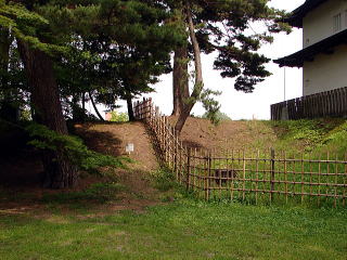 (左)本丸を死守する二の丸土塁上の丑寅櫓。