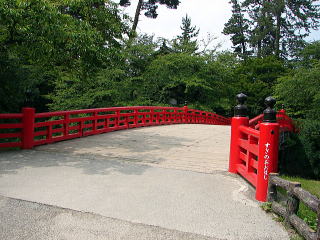 南内門外の大橋に当たり、名称は杉材を用いた橋ということから付けられたといわれる。文政四年(一八二一)に濠の両側が石垣となるとともに、桧材によって掛替えされた際に欄干・擬宝珠がつけられたものである。