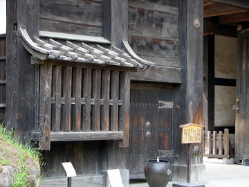 櫓門の一階に見張番を置き、通常用いる潜戸(くぐりど)の脇に出窓を開いて、出入りを監視した。