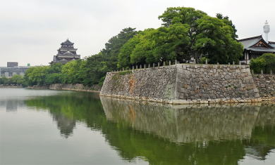 | 城地の選定と築城 毛利氏は、南北朝時代から郡山城(現広島県安芸高田市)を居城とする一領主でしたが、元就の代に中国地方の大半を支配する戦国大名に成長しました。後を継いだ孫の輝元は、豊臣秀吉の聚楽第・大坂城を見物し、城下町と一体化して政治・経済の中心地として機能する城郭の必要性を痛感しました。こうして瀬戸内海に面する太田川河口の三角州に城地を定め、天正17年(1589)4月15日鍬入(くわいれ)式を行いました。 築城工事は穂田元清(ほいだもときよ/元就の子)・二宮就辰(にのみやなりとき/輝元側近)を普請奉行として急ピッチで進められ、天正18年末には堀と城塁が一応完成し、翌年、輝元は入城を果たしました。 城下の整備 慶長5年(1600)の関ヶ原の合戦後、輝元に代わって安芸・備後二ヶ国(現在の広島県域)の領主として福島正則が入城し、外堀や外郭の整備を進め広島城を完成させました。また、広島城下を通るように西国街道(山陽道)を南下させたほか、出雲・石見街道を整備し、その沿道を中心に町人町の大幅な拡充を図りました。 しかし、洪水で破損した広島城の修築許可の不備をとがめられた正則は元和5年(1619)に芸備二ヶ国を没収され、代わって和歌山から浅野長晟(ながあきら)が安芸一国・備後半国の領主として広島城に入りました。以後、明治2年(1869)の版籍奉還までのおおよそ250年間、浅野氏が12代にわたって広島城主を勤めました。 明治以降の広島城 廃藩置県以後、城内には旧陸軍の施設が徐々に設けられ、建造物は次第になくなりました。特に明治7年には、本丸・三の丸で出火し、本丸御殿等も焼失し、大天守、中・裏御門、二の丸等を残すのみとなってしまいました。そして昭和20年(1945)8月6日、原子爆弾により天守閣をはじめ城内の建造物は全て壊滅しました。 現在の天守閣は、同33年(1958)に外観を復元して建設されたもので、内部は武家文化を中心に紹介する歴史博物館になっています。 (文は現地リーフレットより引用) |
