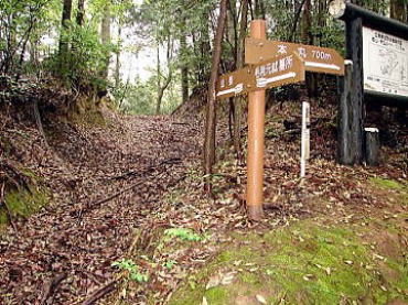 ![]() 右斜めの道を登った先が旧本城の山頂。 |
