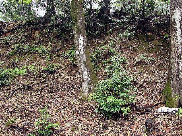 《二の丸跡》 ![]() 二の丸は本丸の南につながり、約2m低く北西にある石列で画した通路でつながっている。 |