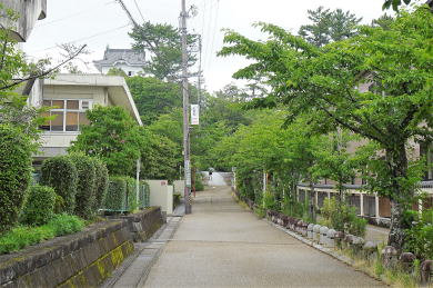 ![]() 「堀の道」から見た高石垣 |