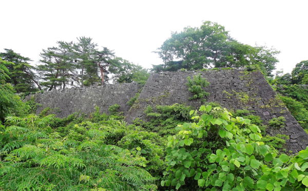 ![]() 南辺の高石垣 石垣に雑草などが茂っているため、このような状態になっています。石垣上には天守が微かに見えます。次は天守を訪問します。 |