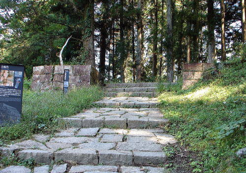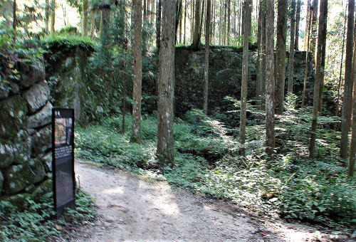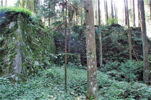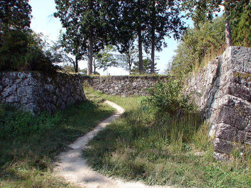 ![]() 東口門(枡形虎口) 長局曲輪から本丸に進入する構造となる枡形虎口入口。左に折れて本丸内に入る。 |