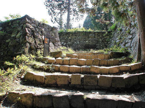 ![]() 六段壁の石垣。左手の石段から本丸に登ります。石段左側は東曲輪