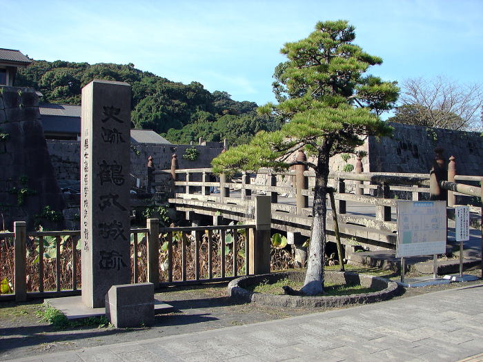 | 概 略 | ― 77万石の本拠は天守閣をもたない屋形づくり ― 鶴が翼を広げた形をしていることから鹿児島城は別名鶴丸城と呼ばれていました。1601年(慶長6)、関が原合戦の後、島津家18代家久が上山城(城山)の補修と麓の居館づくりを思い立ち、父義弘の「ここは海に近すぎて危ない」という反対を押し切って着工します。家久はこの地を政治・経済の中心地として城下町の建設を始めたのです。まず居館を築き、その周辺に家臣の屋敷を移し、1606年(慶長11)城の前の橋が完成したとされています 城といっても本丸、二の丸、下屋敷が並び、天守閣や層楼のない屋形づくりでした。これは、「城をもって守りと成さず、人をもって城と成す」という薩摩藩流の思想によるもので、藩内の各所には兵農一致の郷士団が守る外城(とじょう)がめぐらされていました。 城下は鶴丸城を中心に武家屋敷、その外側に上(かん)町6町、下(した)町12町、そして西田町4町が設けられ、5,000人余りの町人が集められましたが、圧倒的に武士の多い城下町だったようです。維新後は、熊本鎮台の分営として使われ、1873年(明治6)炎上。残されたのは城壁と擬宝珠(ぎぼし)つきの石橋だけとなりました。 (現地説明板より) |