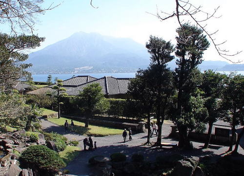 ![]() 仙巖園(せんがんえん)から見た桜島 仙厳園は第19代島津光久によって万治元年(1658年)に造られました。歴代当主の別邸として機能し、雄大な桜島を借景とする庭園や錫門、御殿、望嶽楼などが大名家の暮らしを今に伝えています。 |