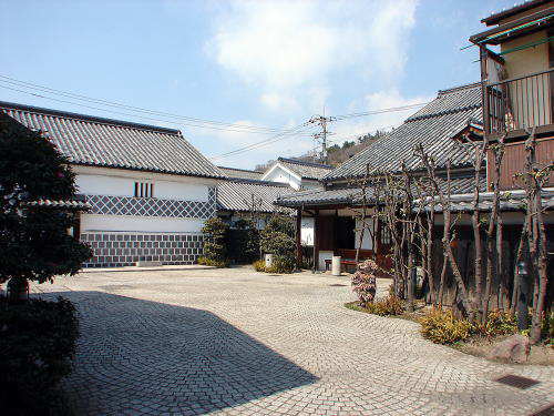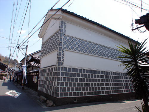 ▲なまこ壁で覆われたむかし下津井回船問屋の「蔵さろん」〜左奥の建物が、むかし下津井回船問屋「母屋」。