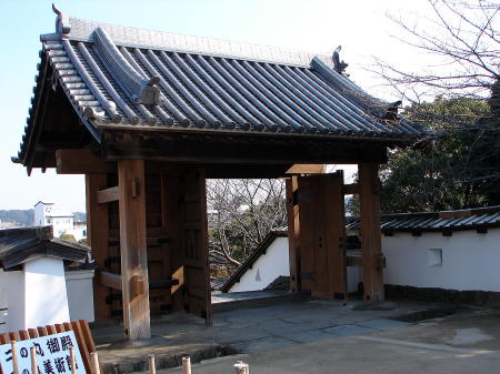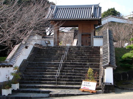 ![]() 蕗の門(市指定文化財) この門は、掛川城の内堀(蓮池)のほとりに建てられていた四脚門である。廃城後の明治5年(1872)に円満寺が買い受けて、現在地に移築した。その時に、柱の下を二尺五寸(約76cm)切り取って山門にしたといわれている。 地域別訪問城に戻る |