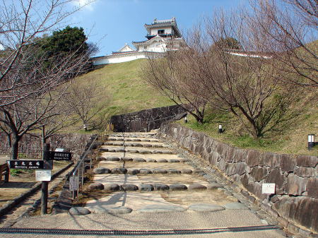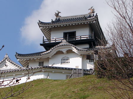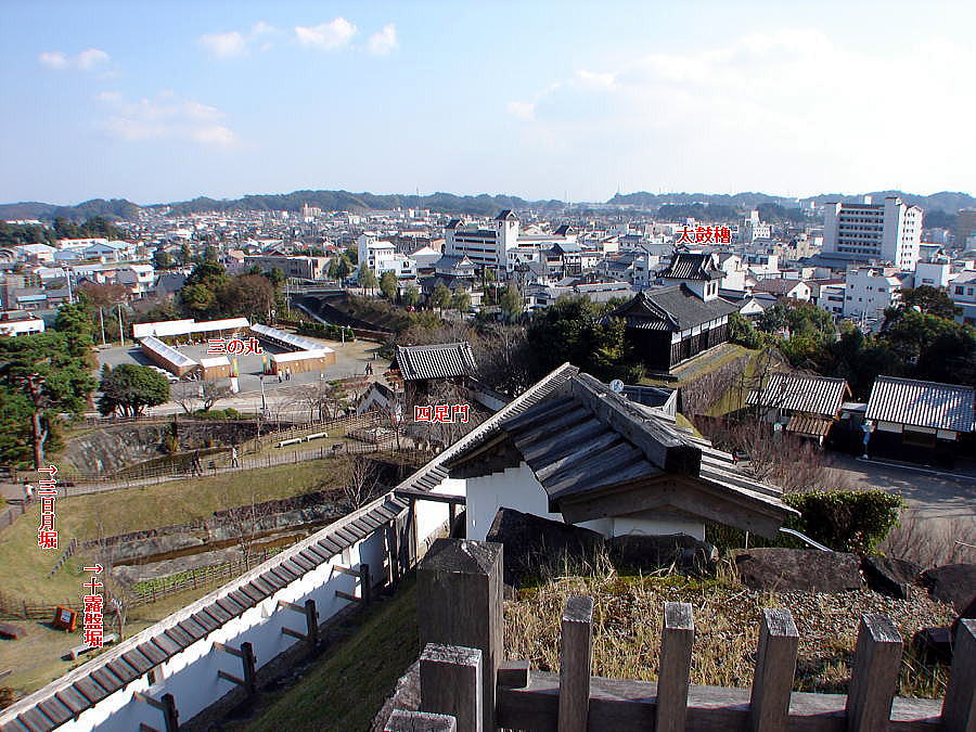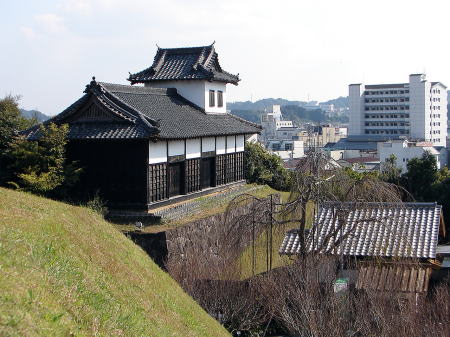 ![]() ▲太鼓櫓(市指定文化財) この太鼓櫓は、嘉永7年(1854)の大地震以後に建てられた櫓で、時刻を知らせる太鼓を置いていた。何回かの移転の末、昭和30年(1955)に三の丸から荒和布(あらめ)櫓のあった現在の位置に改築の上、移築された。 |