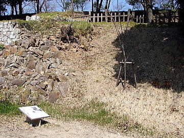 天主曲輪(本丸)裏馬場跡![]() 馬場と言うが、実際は、馬屋のある曲輪である。馬は山城でも伝令用として使われたもので、馬屋の必要があるが、音に敏感な動物のため敵の攻撃にさらされないよう、城郭でも静かな裏側に設けられた。 |