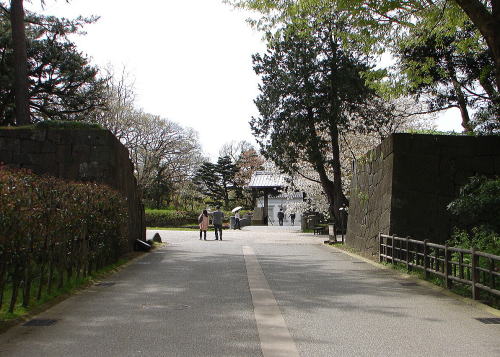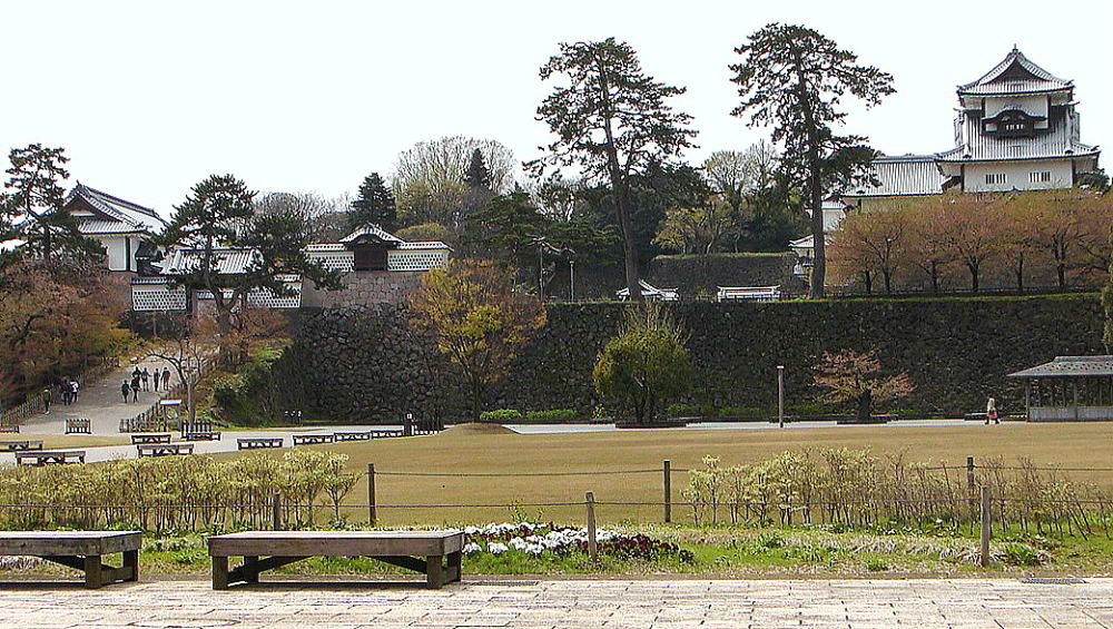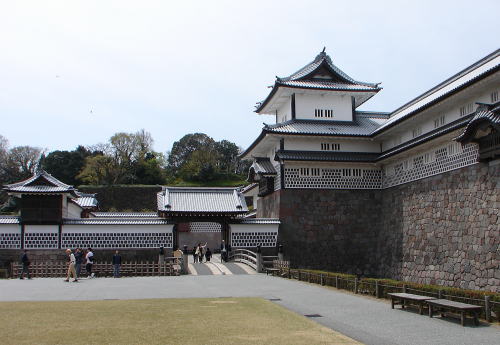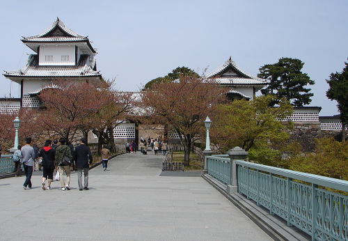 金沢城公園〜明治期には兵部省、昭和期には金沢大学が置かれ、現在は金沢城公園として整備されている。JR金沢駅からバスで約15分。