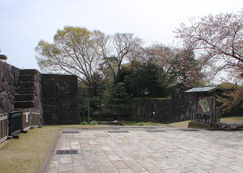 ▼新丸広場から望む河北門(左側)と菱櫓(右側)![]() |