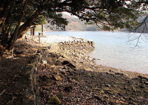 【金田城について】663年、白村江(はくすきのえ/はくそんこう)の戦いにおいて唐・新羅連合軍に敗れた倭(国)は、西日本各地に古代山城を築き、対馬・壱岐・筑紫に烽火(とぶひ)と国境守備兵・防人(さきもり)を配置しました。日本側の当事者は中大兄皇子(なかのおおえのおうじ、のちの天智天皇)で、大化の改新という政治改革を進めながら外国からの侵略にも備えるという、まさに激動の時代でした。 国境の島・対馬は国土防衛の最前線となり、浅茅湾(あそうわん)の複雑な海岸線と、湾に突き出した石英斑岩の岩塊・城山(じょうやま。標高276m)の地形を利用し、667年、古代山城・金田城が築かれました(築城者 ヤマト政権)。防人たちはおもに関東から徴兵され、家族や故郷を想う心情が万葉集の「防人の歌」として今に伝えられています。 また、明治期には金田城を再整備する形で城山砲台が建設され、陸軍砲兵部隊が国境防衛の任にあたりました。その間およそ1200年が経過しているにもかかわらず、城山の軍事的重要性は変わらなかったことになります(現地パンフレットに一部追記、転載)。 |