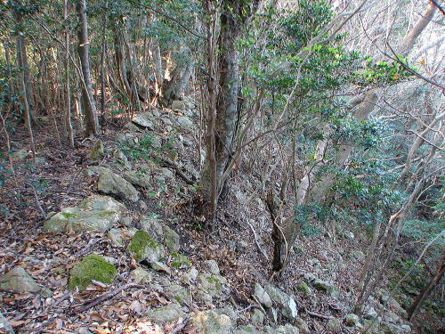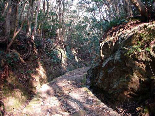 ![]() 登山道 蔵ノ内から東南角石塁に至る旧軍用道。 |