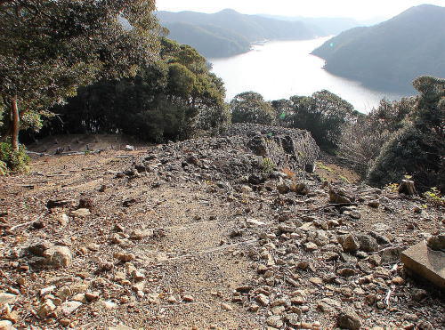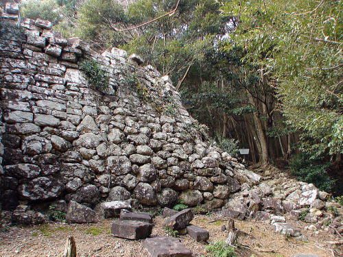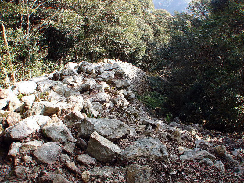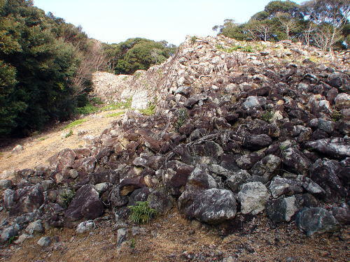 ![]() 石塁が折れる分岐点(張り出し)の崩壊部分 |