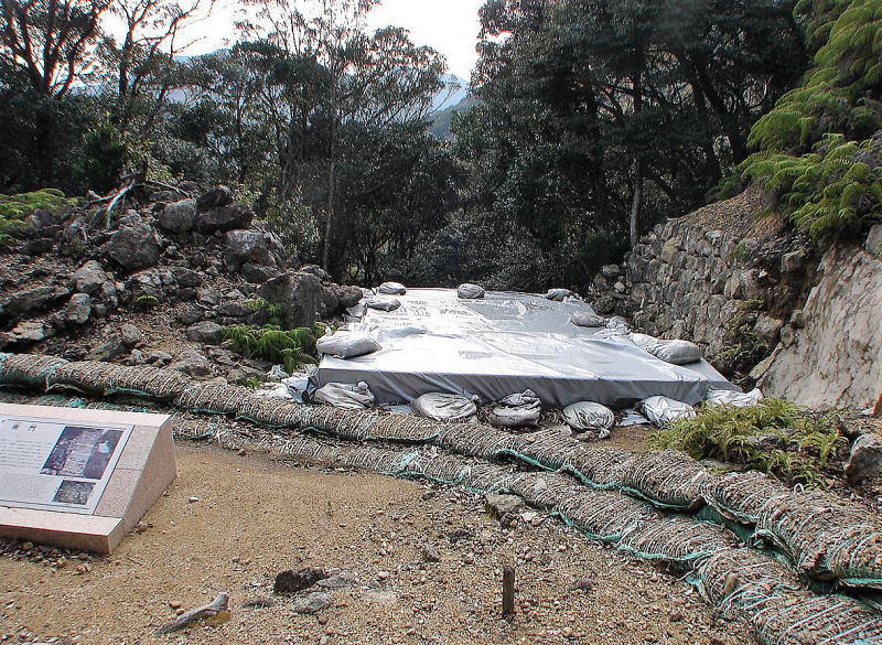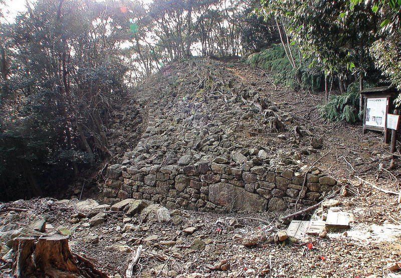 ![]() 急斜面が待つ北側ルートに残る石垣 |