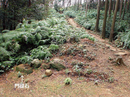 ![]() 南土塁 門礎石は当時のもの。 |