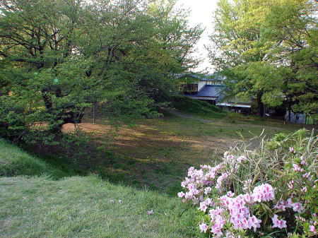 ![]() 土塁上から見た本丸内 |