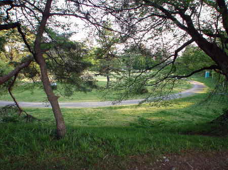 ![]() 大手門跡 加納城は真ん中の道を奥へ真っ直ぐ行った突き当たりになる。 |