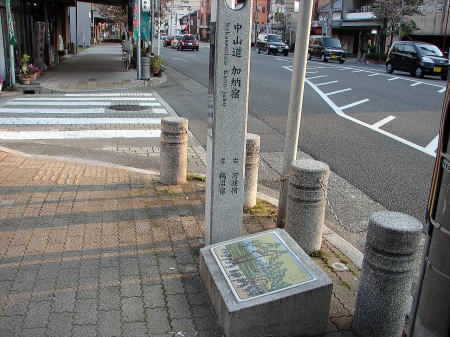 ![]() 町の所々に立つ中山道・加納宿の道標 |