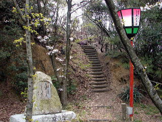 ▼階段の上が山頂
