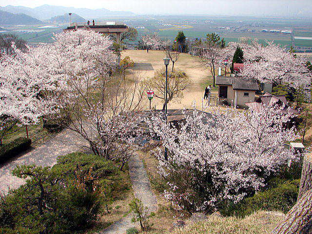 笠岡駅から古城山公園まで徒歩10分。山頂まで車も可。駐車場有