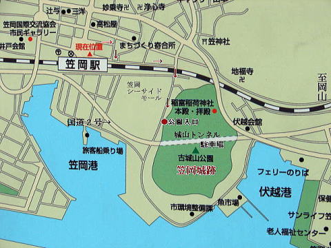 ▲JR山陽本線笠岡駅前の案内図