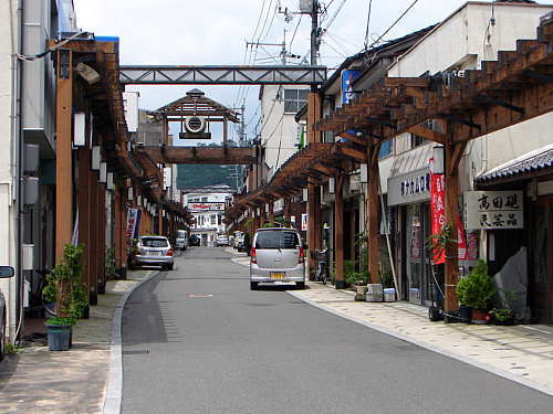 ▲檜舞台(ウッドストリート) 木材の町勝山を象徴する商店街。この先に勝山町並み保存地区が展開する