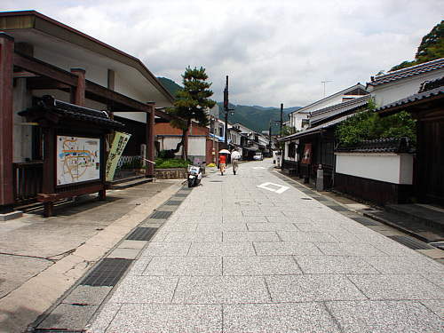 ▲勝山郷土資料館(左)と出雲街道 郷土資料館は、町並み保存地区の中央に位置し、また、城下町散策観光の案内所としても利用されている