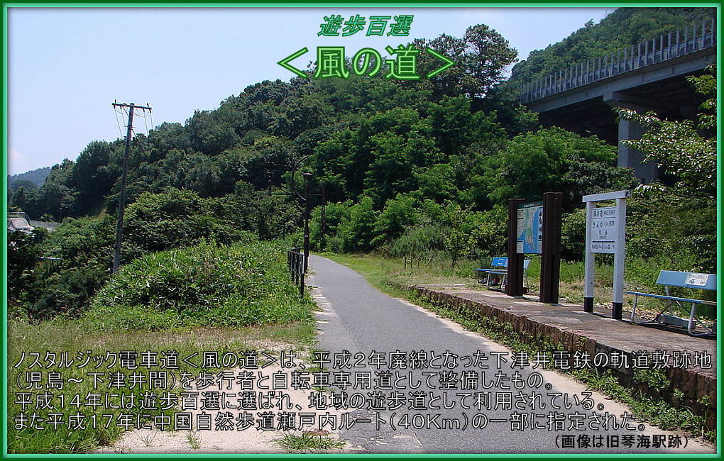 ▲旧下津井駅跡に至る「風の道」