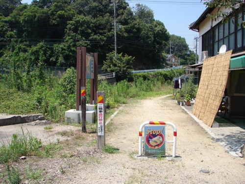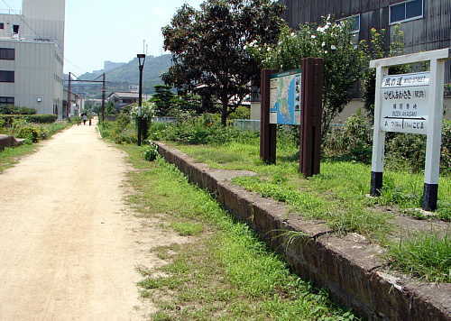 ▲旧備前赤崎駅跡 「風の道」前方は鷲羽山