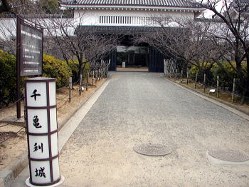 ■土橋を渡り、櫓門をくぐり本丸内部へと至る。岸和田城は千亀利城(ちきりじょう)ともよばれる