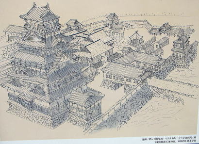■ルイス=フロイスと北ノ庄ルイス=フロイス(1532〜1597)は、安土桃山時代に30年以上にわたり日本に滞在したイエズス会の司祭である。日本へは、永禄6年(1563)、長崎県の西彼杵郡で第一歩を印し、永禄8年正月に京都に入っている。この時期が織田信長の入京の時期と重なり、信長の知遇を得てからは、西日本を中心に各地を回り布教活動を行うと同時に、そこで知りえた各地の事情を書簡としてヨーロッパへ送り続けた。 北ノ庄へは、天正8年(1580)5月、同9年4月の2度訪れている。その時のことも書簡として残されており、天守などに石の瓦が葺かれていること、大橋(九十九橋)が勢田の大橋と同じ大きさであること、城下が安土の2倍の広さがあることなど、この時期の北ノ庄を知ることができる貴重な資料となっている。 (北庄城下の推定復原図は展示資料館にて撮影) |
