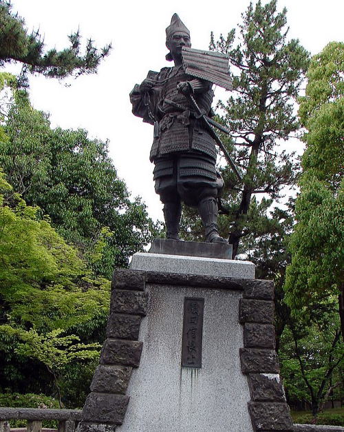 ![]() ▲清洲城から桶狭間に出陣しょうとする姿の「信長公出陣の像」と、左は「濃姫像」 |